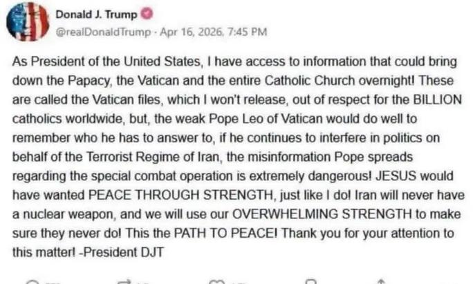 Jetzt will Trump den Papst erpressen - mit Vatikanfiles 😎🤣 - dabei wissen wir, dass die Kirche sicherlich kein Umschuldslamm ist - aber sie arbeitet ihre dunkle Flecken auf.