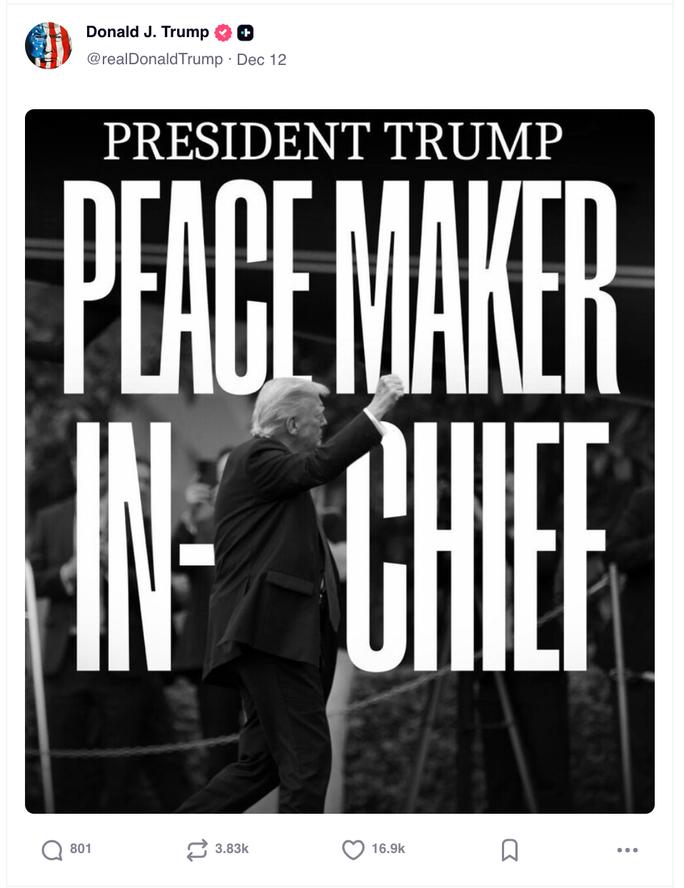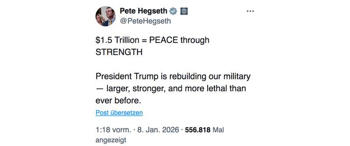 Aber mit einer druckfrischen "Nationalen Sicherheitsstrategie" auf dem Tisch, einem hochmotivierten Kriegsminister / tätowierten Jerusalemkreuzritter und einem Chabad-Lubawitsch-Schwiegersohn (Kushner) an seiner Seite, einem dementsprechend angepassten Kriegsfinanzplan und – last but not least – mit der unermüdlichen Hilfe seines haftbefehlten Massenmörderkumpels und Groß-Israel Statthalters in spe "Bibi" Netanjahu sowie diverser milliardenschwerer Großspender aus der zionistischen Übermenschenkaste, fiel es dem (seit kurzem auch) Friedensratsvorsitzenden "Don of Peace" bzw. seiner PR-Brigade sicherlich nicht allzu schwer, seiner Rethorik und der seiner Mitstreiter einen etwas kantigeren Schliff zu verleihen.