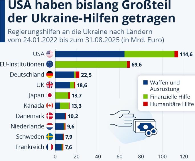 Laut verschiedenen Statistiken befindet sich Österreich auf Platz 17 der Ukraine-Unterstützer in absoluten Zahlen, allerdings auf Platz 14, die Bevölkerung betreffend.