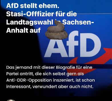 ▶️ In seinem Umfeld im Harz wächst die Empörung über die Kandidatur, insbesondere, weil jemand mit dieser Biografie für eine Partei antritt, die sich selbst gern als Anti‑DDR‑Opposition inszeniert. Weniger anzeigen.