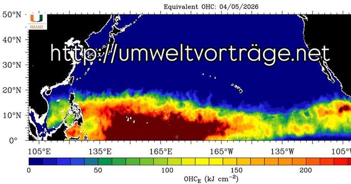 Der Meteorologe John Scheve weist darauf hin, dass der Wärmegehalt des äquatorialen Pazifiks normalerweise zwischen Oktober und Januar seinen jährlichen Höhepunkt erreicht und danach wieder sinkt. Doch in diesem Jahr passiert das Gegenteil: Die Wärmemenge nimmt weiter zu – sowohl insgesamt als auch räumlich. Besonders auffällig ist das Gebiet nördlich des Äquators, in dem die Werte über 250 kJ pro Quadratzentimeter liegen. Diese Fläche hat sich innerhalb von nur 60 Tagen nahezu verdoppelt. Ein solcher Anstieg zu einer Zeit, in der eigentlich eine Abkühlung erwartet wird, ist außergewöhnlich.
