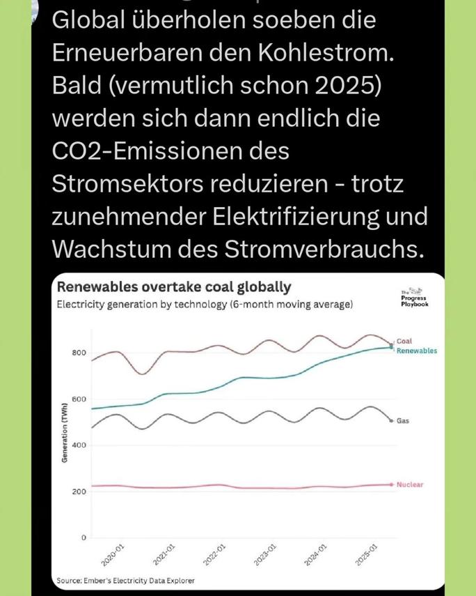 Der globale Energiesektor erlebt gerade einen historischen Wendepunkt: Erneuerbare Energien haben den Kohlestrom erstmals überholt. Dieser Meilenstein bedeutet, dass ein wachsender Anteil der weltweiten Stromproduktion aus Quellen wie Wind, Sonne und Wasser stammt, während die Kohleverstromung rückläufig ist. Prognosen deuten darauf hin, dass sich schon 2025 die CO₂-Emissionen des Stromsektors spürbar verringern werden – und zwar trotz steigender Elektrifizierung in Industrie, Verkehr und Haushalten sowie zunehmendem Stromverbrauch insgesamt. Der wachsende Bedarf an elektrischer Energie umfasst dabei nicht nur den öffentlichen Konsum, sondern auch den Eigenverbrauch durch private Photovoltaikanlagen und betriebliche Stromerzeugung, die direkt vor Ort genutzt wird.