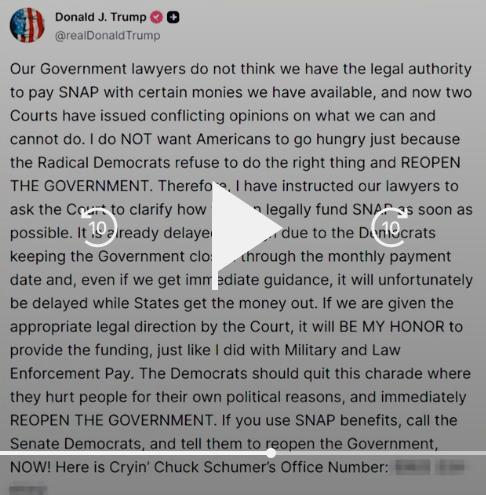 Rund 42 Millionen Amerikaner, das entspricht etwa einem von acht Menschen in den USA, sind auf Lebensmittelkarten (das Supplemental Nutrition Assistance Program, SNAP) angewiesen. Darunter sind etwa 21 Millionen Kinder. Diese Menschen erhalten im Durchschnitt monatlich etwa 187 bis 190 Dollar auf ihre Lebensmittelkarten, um sich das Notwendige zu kaufen. Das Programm unterstützt vor allem Familien mit geringem Einkommen, Alleinerziehende sowie Senioren. Es handelt sich um ein staatliches Hilfsprogramm, das jährlich rund 8 Milliarden Dollar kostet. Aufgrund politischer Stillstände im US-Haushalt war zeitweise die Auszahlung der Lebensmittelhilfe bedroht, aber Bundesgerichte haben Entscheidungen getroffen, sodass die Unterstützung vorerst weitergehen soll.