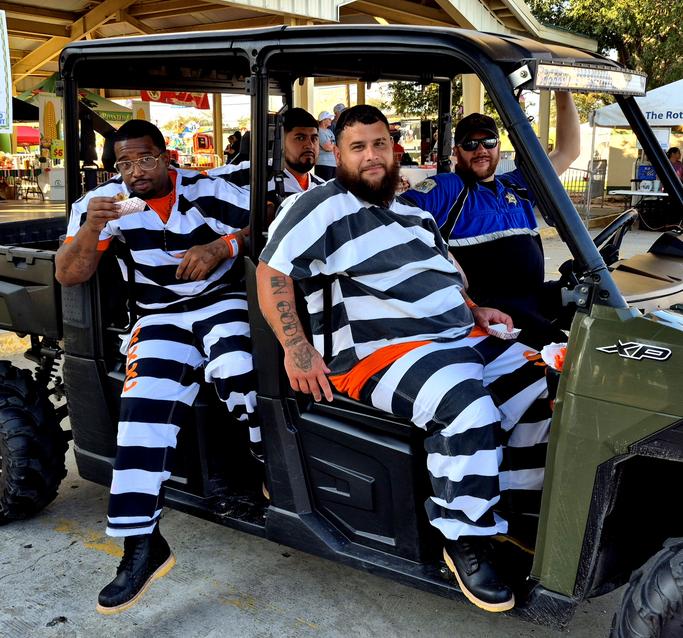 Dieses Rodeo erinnert etwas an die Gladiatorenkämpfe im alten Rom. Das Angola Gefängnis, berühmt und berüchtigt wurde als Gefängnis 1901 eröffnet. Davor war es eine Baumwoll- Farm mit vielen Sklaven aus Afrika- Versklavte Schwarze aus Angola-Afrika deshalb der Name Angola für das Gefängnis.