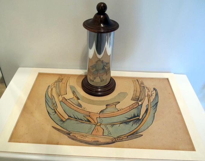 Im frühen 17. Jahrhundert nahm man dann zylindrische Spiegel zur Hilfe, um eine Anamorphose zu erzeugen. Dabei wurde meist ein runder Spiegel (Zylinder) auf das Zerrbild gesetzt, sodass man in dem Spiegel das entzerrte Bild sah. Der bereits vorgestellte