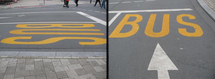 Längenanamorphose beim Wort „Bus“ • Foto: von FriedeWie • wikipedia