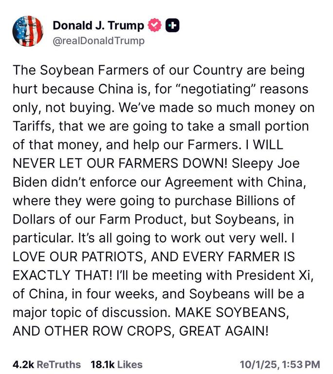 Einfach herrlich. China kauft aktuell ganz genau NULL Soja in den USA. Auch bei Rindfleisch geht China jetzt verstärkt nach Australien und Neuseeland.