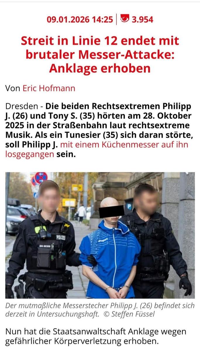 Dresden: Streit in Linie 12 endet mit brutaler Messer-Attacke - Anklage erhoben https://share.google/IpxwcWVkfnqqC9Qpz