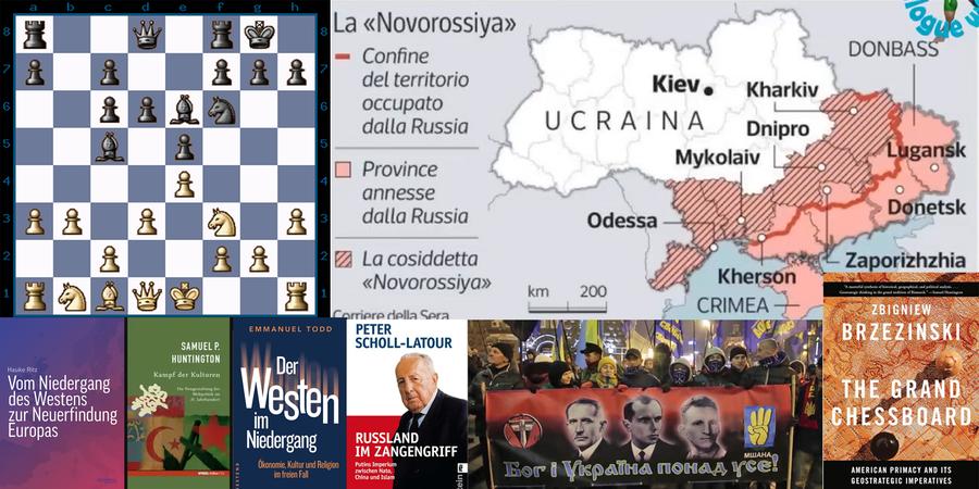 Quellen: Zbigniew Brzeziński, – Die einzige Weltmacht: Amerikas Strategie der Vorherrschaft und der Kampf um Eurasien Nomen Verlag | Hauke Ritz – Vom Niedergang des Westens zur Neuerfindung Europas, Promedia Verlag | Emmanuel Todd – Der Westen im Niedergang: Ökonomie, Kultur und Religion im freien Fall, Westend Verlag | Peter Scholl-Latour – Rußland im Zangengriff: Putins Imperium zwischen Nato, China und Islam, Ullstein | Grzegorz Rossolinski-Liebe – Stepan Bandera, Leben und Kult, Wallstein Verlag, 2025 | Klaus Kellmann – Dimensionen der Mittäterschaft, Die europäische Kollaboration mit dem Dritten Reich – Böhlau Wien | Saul Friedländer – Das Dritte Reich und die Juden, 1933-1945, Beck Verlag 2010 | Peter Scholl-Latour – Rußland im Zangengriff: Putins Imperium zwischen Nato, China und Islam, Ullstein, 2007