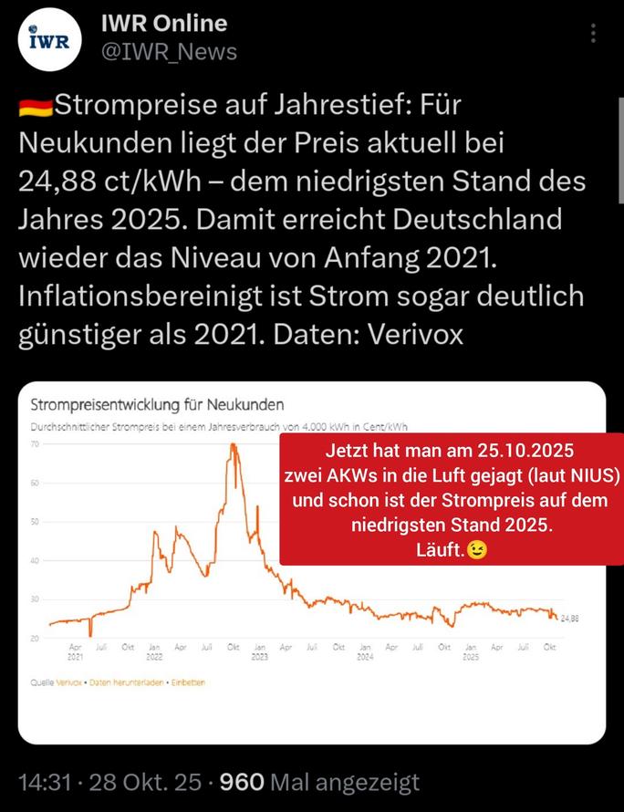 Jetzt hat man am 25.10.2025 zwei AKWs in die Luft gejagt (laut NIUS, also nicht ich, sondern der der von mir abgekupfert hat)