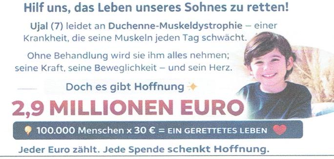 Der Junge um den es geht ist der 7-Jährige Ujal. Er leidet er an einem seltenen Gendefekt. Auf lange Sicht, vielleicht auch schon früher, werden seine Überlebenschancen immer geringer. Man sagt, wenn nichts unternommen wird, könnte er im Teenageralter an seiner Krankheit, dem Gendefekt der seine Muskeln zersetzt, natürlich viel zu früh sterben. Noch besteht große Hoffnung dies zu verhindern.