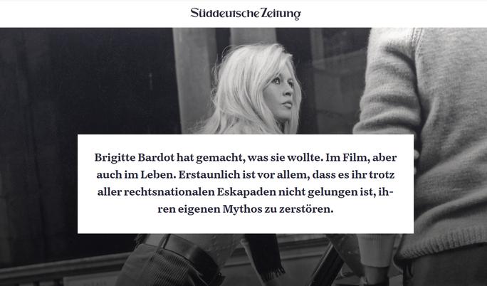 Zum Tod von Brigitte Bardot (am 28. Dezember) gab es einige zweifelhafte Nachrufe in den "Qualitätsmedien". Den Vogel abgeschossen hat dabei die Süddeutsche Zeitung: