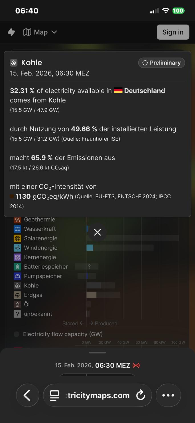 Aber selbst beim obigen Verbrauch von 47,9 GW musste man 54,35% - also mehr als die Hälfte des deutschen Strom mit KOHLE und Gas erzeugen.