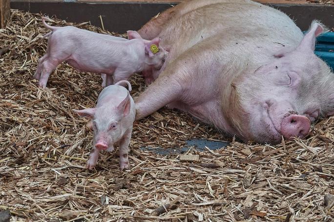 Meist werden Schweine absolut nicht ihren Bedürfnissen entsprechend gehalten - hier scheinen die Ferkelchen (noch) nicht von ihrer Mama getrennt zu werden und haben Stroh