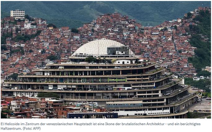 ist Venezuelas schlimmstes Gefängnis, vielleicht sogar auf der ganzen Welt. Es wurde unter den dortigen Kommunisten aus dem vorgesehenen Shopping-Paradies eine Folter-Hölle geschaffen. Das avantgardistische Bauwerk sollte in den 1950er Jahren eines der innovativsten Einkaufszentren der Welt werden. Daraus wurde nichts. Jahrzehnte später thront der Koloss über der Stadt wie ein Symbol für die Angst und den Schrecken des Maduro-Regimes.